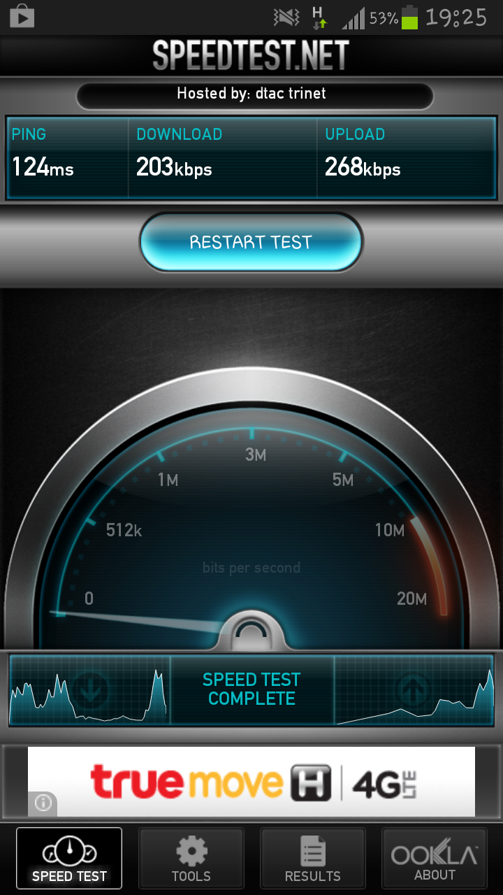 เนื่องจากวันอาทิตย์ที่ผ่านมาได้นำเอาซิมเทพ True Unlimited 4G ความเร็วสูงสุด 4 Mbps ที่ซื้อไว้ ไปให้แม่ที่อยู่อัมพวาได้ใช้งาน internet ตอนแรกทดสอบก็พอใช้งานได้ ความเร็วดาวน์โหลดได้ 3Mbps แต่อัพโหลดได้ไ