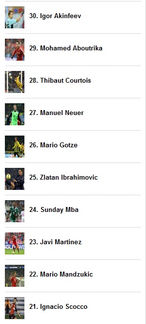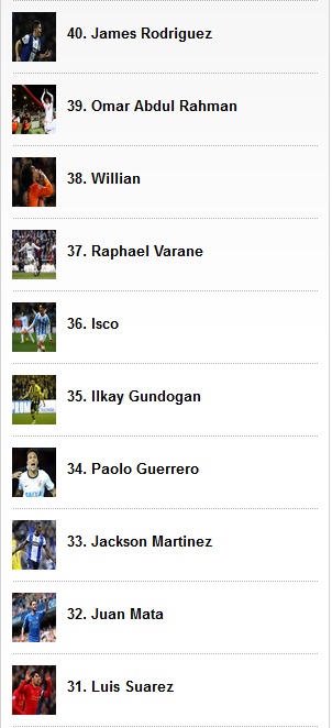 *** 50 อันดับนักฟุตบอล จาก Goal.com 2013 ***