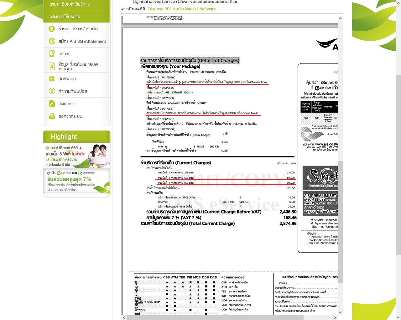 แต่ผมไม่คิดว่า พอใบแจ้งออกมา จะกลายเป็นว่า ผมมีแพ็คเกจ เน็ต ไม่จำกัด 599 บาท กับ แพ็คเกตเน็ตไม่จำกัด 999 บาท