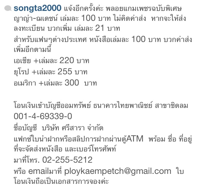 สำหรับคนที่อยู่ต่างประเทศ สามารถสั่งซื้อได้ตามรายละเอียดนี้