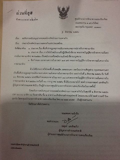 เห็นประกาศขอสนับสนุนถ่ายทอดสดโทรทัศน์รวมการเฉพาะกิจรึยังคะ เป็นเรื่องอะไรคะ