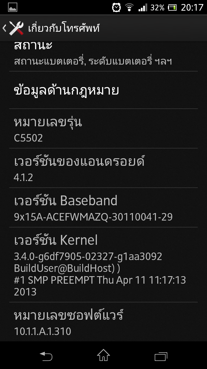 ตอนแรกผมเป็น 4.1.2 รหัส ตัวเครื่อง C5502 ครับ แต่ เอาซอฟต์แวร์ของ C5503 แฟลช เข้าไปครับ