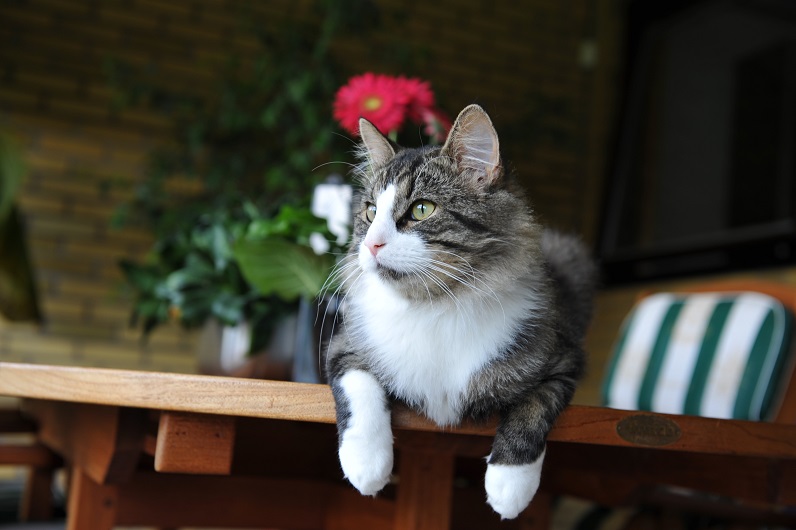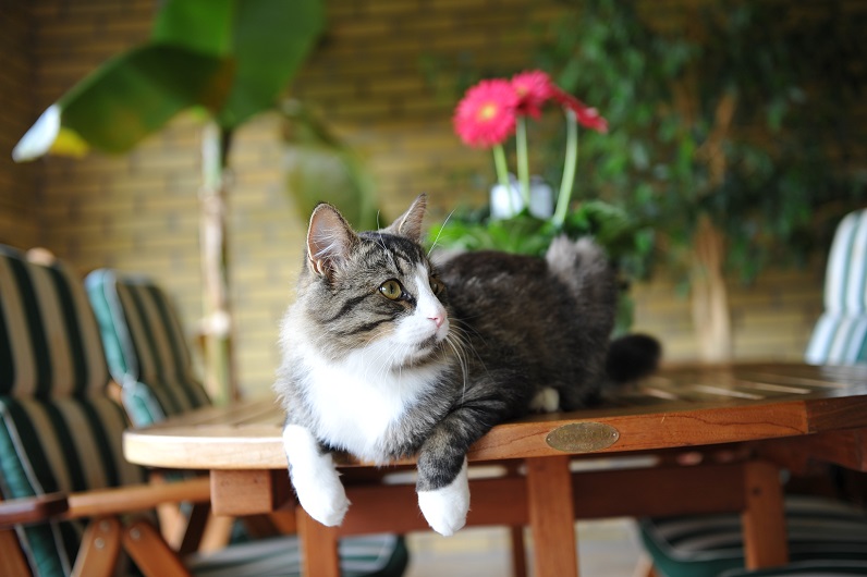แมวจอมวุ่นหอบดอกไม้และอาหาร...มีผักด้วยนะคะ..เอามาฝากทุกคนเลยค่ะ
