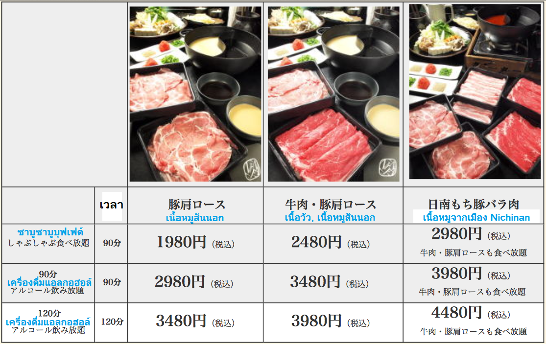 แบบที่ 3 คือ ชาบูชาบูบุฟเฟ่ สั่งเนื้อมามากเท่าไหร่ก็ได้ภายใน 90 นาที นั้นเอง