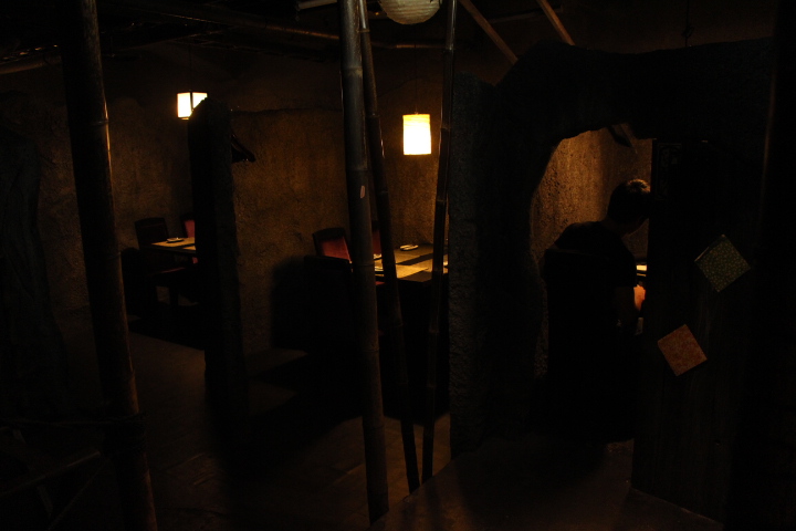 ร้านข้างในเหมือนอยู่ในถ้ำเลยค่ะ มีนินจาเดินนำทางด้วย (ขอเรียกว่านินจา แทนคำว่าพนักงานนะคะ จะได้รู้สึกถึงบรรยากาศ ฮ่าๆๆ)