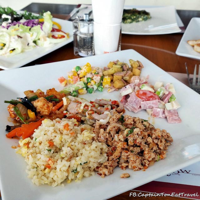 จานนี้เป็นรวมอาหารไทย และสลัดแบบฝรั่งไว้ในจานเดียวกัน