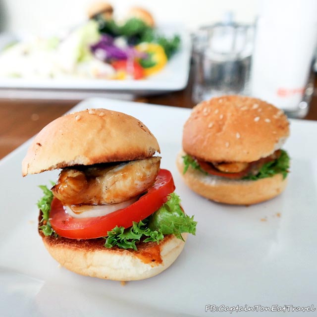 เบอร์เกอร์ไก่เม๊กซิกกัน รสชาติแบบเดียวกับหมูเม๊กซิกันที่เป็นจานๆเมื่อกี้เลย อร่อยดีครับ