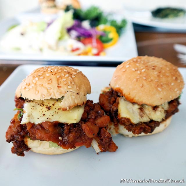 เบอร์เกอร์คลาสิคหมู รสหมูผสมหัวหอมและแครอท ตัดกับชีสเค็มๆ อร่อยดีครับ