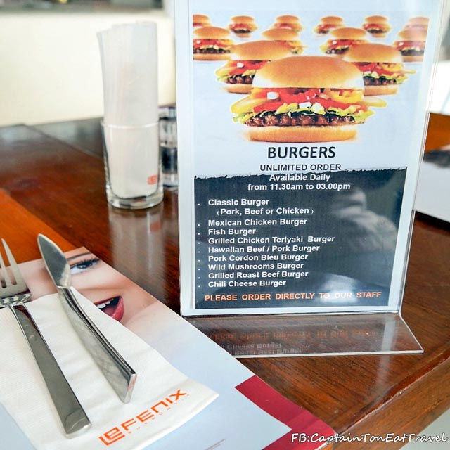 สำรวจเมนูเบอร์เกอร์กันก่อน ดูแล้วก็มีไม่กี่อย่างนะ เอางี้ละกันสั่งมาทุกอย่างเลยอย่างละ 2 ชิ้น