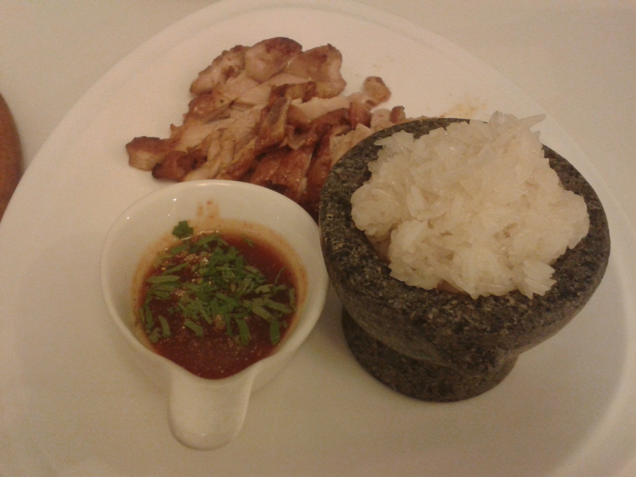 จานที่ห้า ข้าวเหนียวไก่ย่างจิ้มแจ่ว ประทับใจข้าวเหนียวในครกน้อยๆ สมาชิกบอกแจ่วอร่อยค่ะ เราว่าข้าวเหนียวนิ่มดี แต่แจ่วน่าจะเผ็ดกว่านี้ ไก่หมักมาเข้ารส ไม่เหนียว อันนี้ชอบพอๆกับพิซซ่าค่ะ