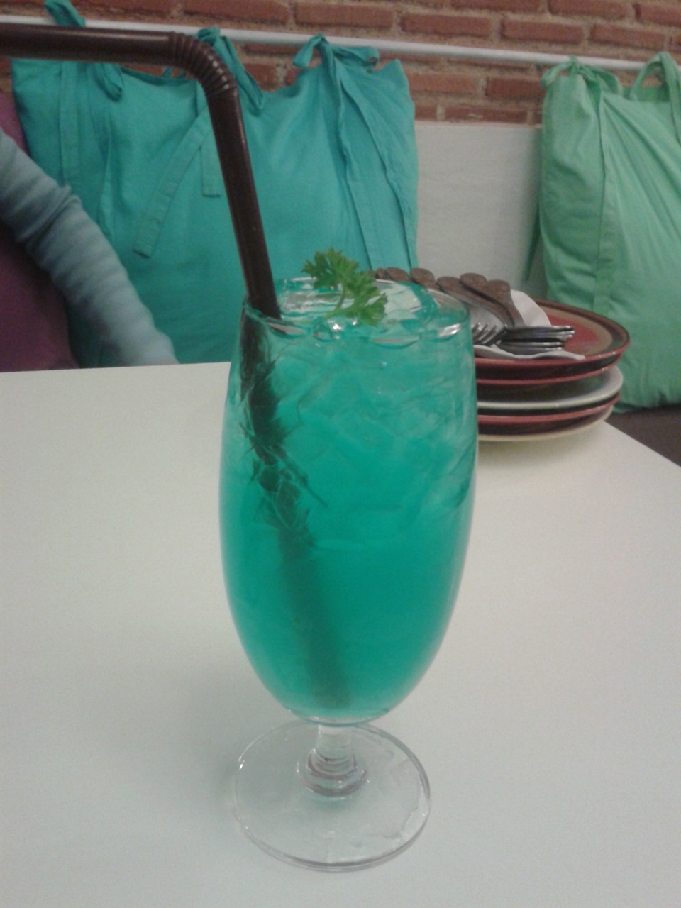 น้ำมาเป็นอย่างแรก แก้วนี้ บลูเลม่อน เพื่อนบอกว่าอร่อยค่ะ
