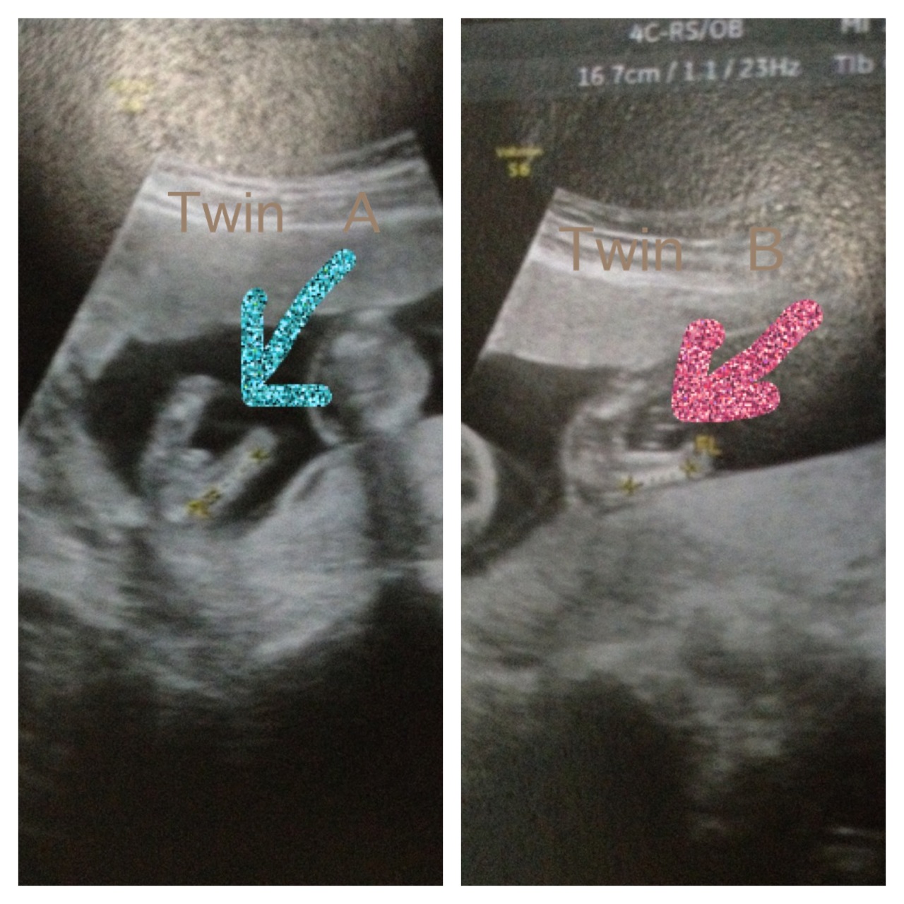 น้องแฝดคนละใบค่ะ ใครพอดูออกบ้างคะ หมอบอกมาค่ะแต่หมอบอกแค่90% ค่ะ ตอนนี้15วีคค่ะ
