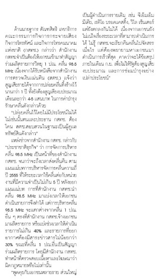 1.... (ร้อนแน่นอน!!) สำนักงาน กสทช. เลือกไม่ประมูลคลื่น FM 98.5 แต่ใช้วิธีแบ่งสัดส่วนการทำรายการ ( เหตุ ตรวจเงินแผ่นดินชี้ปล่อยคลื่นว่างทำไมและอุปกรณ์การออกอากาศเสีย)