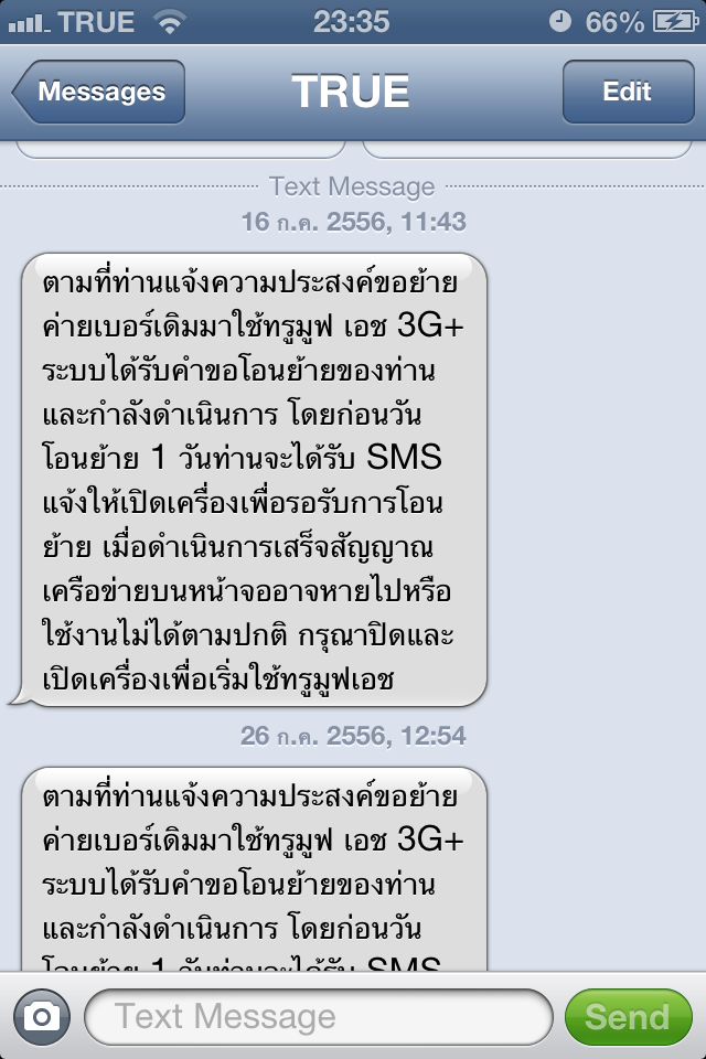 นี่เป็นข้อความทั้งหมดที่ดิฉันได้มา เสียดายที่ไม่ได้บันทึกตอนคุยกะ True chat ไว้