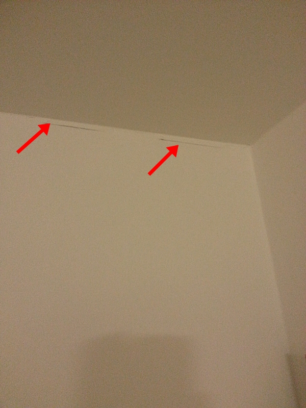 ตอนแรกเราคิดว่าเป้นไม้ที่ปูพื้นเอาไว้ เมือคืนก่อนนอน เพลอไปเห็นรอยแตก ระหว่างพนังห้องกับพื้นด้านบน
