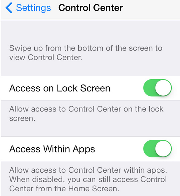 ตั้งให้เปิด/ปิดการใช้งาน Control Center จากในแอพ หรือหน้าล็อกได้
