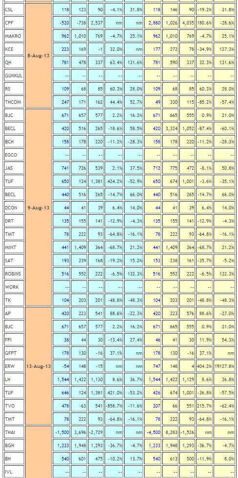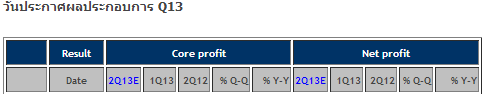 Fw: วันประกาศผลประกอบการ 2Q13 - สัปดาห์นี้