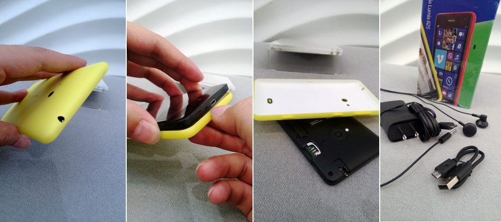 รุ่นนี้สามรถถอดเปลี่ยนฝาหลังได้แต่ไม่สามารถถอดแบตเตอรี่ออกได้นะครับ แงะฝาหลังจากด้านล่างขึ้นมา พอเปิดฝาหลังออกมาสิ่งที่ถอดเปลี่ยนได้นั่นก็คือ Micro sim และ Micro SD card พอปิดฝาหลังลงก็เห็นได้ว่าฝาหลังปิดได้สนิทดีรอบตัวเครื่อง ดูเผิน ๆ เหมือนกับว่าเป็นตัวเครื่อง Uni body เลย สีที่วางจำหน่าย ณ.ตอนนี้เลยก็มี 5 สีคือ แดง, เหลือง, ขาว, ดำ และ เขียว ครับ Accessories ก็มี หูฟังรุ่นเดียวกับ 520, 620, 720 สาย USB และวอล์ชาร์จแบบถอดหัวไม่ได้