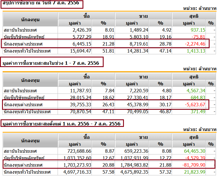 หลังจากครั้งก่อนข้ออ้างเรื่องจะลด QE ฝรั่งทุบหุ้นไทยร่วง 200 กว่าจุด ฝรั่งอ้างขายเพื่อลดความเสี่ยงนำเงินกลับไปยังประเทศของมันด้วยการที่ฝรั่งขายตั้งแต่ต้นเดือนมิถุนายน ณ ปัจจุบันฝรั่งขายไปแล้ว 8 หมื่นกว่าล้าน
