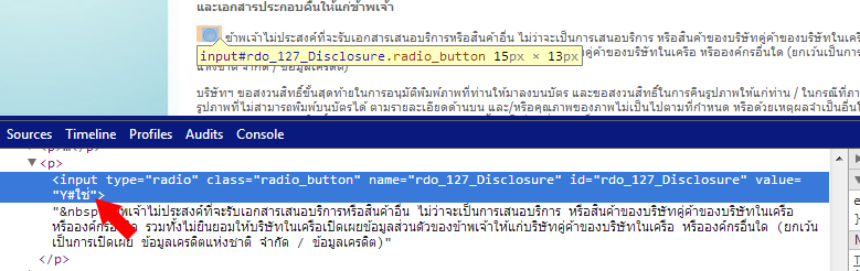 นี่ไงครับ! เขาตั้งค่าตัวแปร (value) ให้ส่งค่าว่า "ใช่" เสมอ ไม่ว่าจะกดเลือกหรือไม่ก็ตาม!