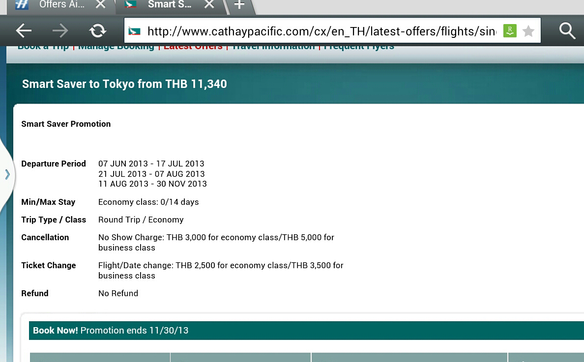 สวัสดีคะ พอดีกำลังหาตั๋วไปญี่ปุ่นปีหน้า เลยเปิดหาเกือบทุกเว็บ ปรากฏว่าพลันไปเห็น ที่เว็บคาเธ่ท์ บอกว่าตั๋วโปรไปญี่ปุ่นเริ่มแค่หมื่นต้นๆ อ่านแล้วเค้าบอกว่ารวมภาษีน้ำมันเรียบร้อยแล้วเดินทางได้ถึง 30 พฤศจิกายนนี้ เป็นโชคดีของคนอยากไปดูใบไม้แดงพอดีคะ ลองอ่านรายละเอียดดีๆดูอีกทีนะคะ เราหาตั๋วปีหน้าแต่ไม่ได้ราคานี้ซะงั้น เสียใจ