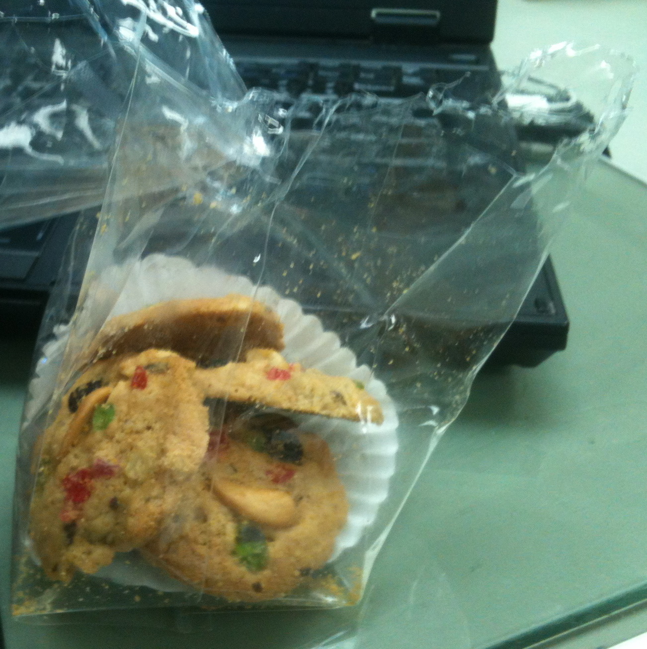 วันนี้ได้รับพัสดุลึกลับ เปิดออกมาเป็นคุ๊กกี้จากเจ๊นากนี่เอง ก็เลยชวนเพื่อนๆ มาปิคนิคล้อมวง กินคุ๊กกี้ กันซะเลย เพื่อนๆ ต่างชื่นชมในความเอร็ดอร่อยของคุ๊กกี้เป็นอย่างมาก ผมก็อดปลื้มใจไม่ได้ ที่ได้เห็