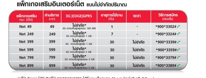 เกี่ยวกับการสมัครแพกเก็ตอินเตอร์เน็ตของ True move H