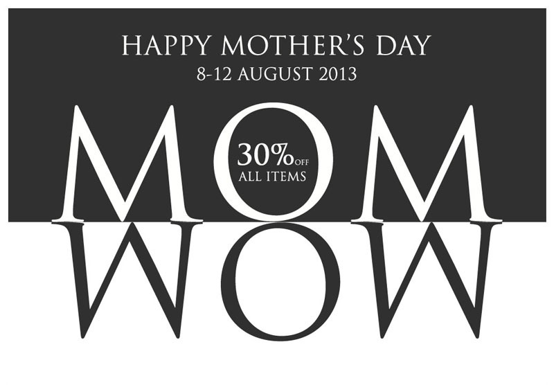 สำหรับวันแม่ลดราคาเฟอร์นิเจอร์และของตกแต่งบ้านทุกชิ้นถึง 30% ตั้งแต่วันที่ 8 - 12 สิงหาคม พ.ศ.2556 ณ คาซา พาโกดา สาขาซอยสุขุมวิท 45 แฟนคลับคนรักบ้านห้ามพลาดมาเลือกสินค้าหรูระดับพรีเมียมเพื่อเป็นของขวัญแก่คุณแม่ได้แล้ว!