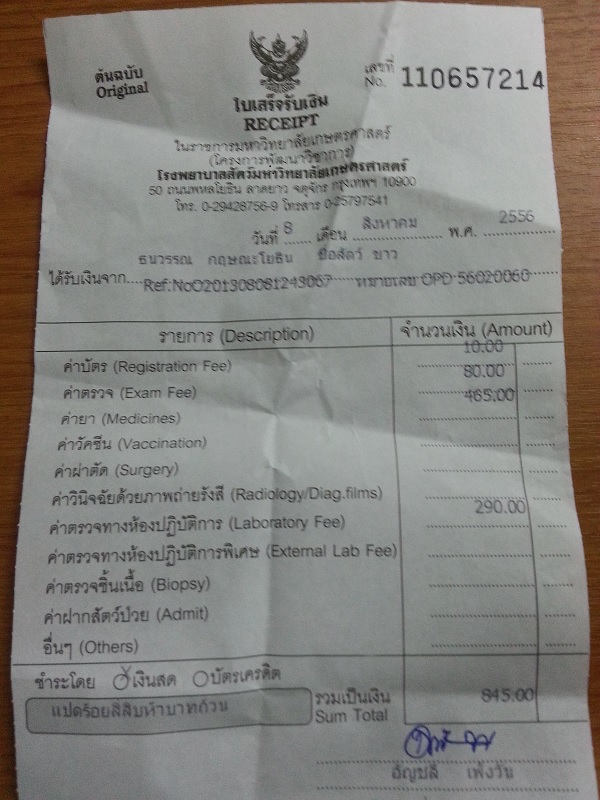 - ค่า ตรวจห้องปฎิบัติการ = 290 บาท