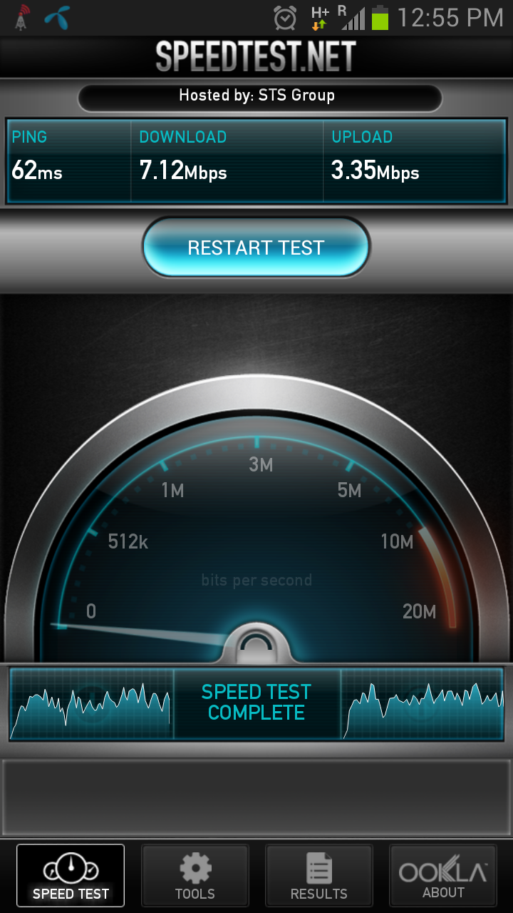 พอดีวันนี้ ได้โอกาสไปซื้อ AirCard Dtac Speedy 21Mbps มา ซึ่งรองรับ 3G 850/2100 สามารถใช้งานได้ทั้ง 3 Operator แล้วมาลอง speed test ดู โดย 1. DTAC 850 ได้ internet มา ฟรี 1 GB 2. Truemove H ใช้เน็ท ฟ