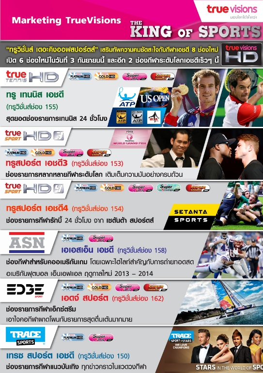 ทรูวิชั่นส์ เดอะคิงออฟสปอร์ตส์ เสริมทัพความคมชัดสะใจกับกีฬาเอชดี 8 ช่องใหม่