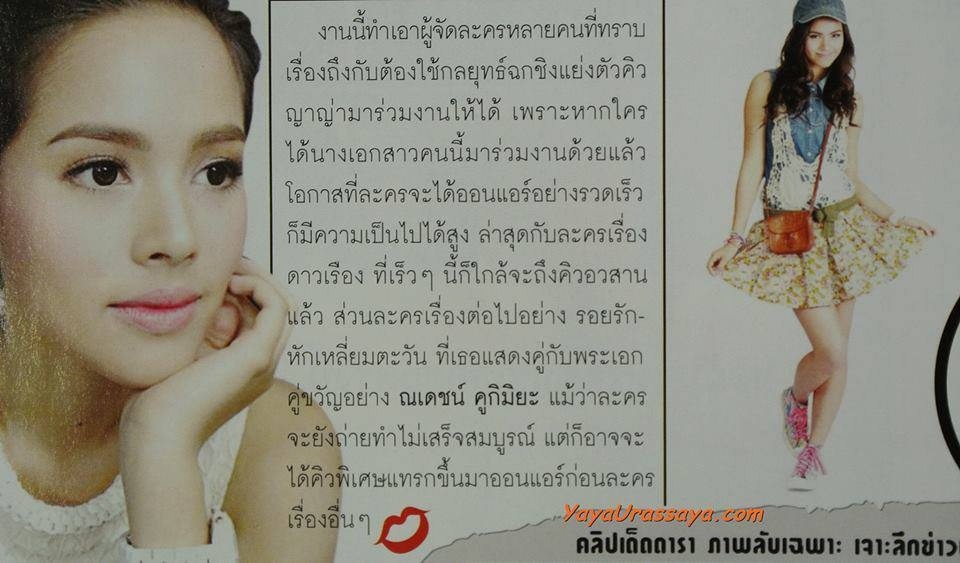 จากหนังสือ Secret Magazine No.5 Vol.108 December 2012 Cr: YayaUrassaya.com คำสัมภาษณ์จากหนังสือ Secret Magazine " หลายครั้งหนูก็เหลิงไปกับคำชม แต่หลังฟังคำชมในหัวหนูจะมีเสียงเตือนว่า คนนี้ชมเ