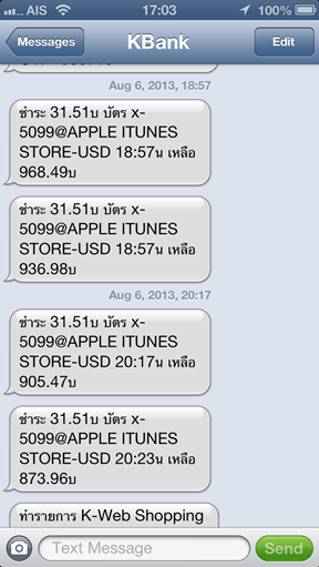 ผมนำรหัสเลขที่บัตร , รหัส CVV ที่ทางธนาคารส่งมาให้ นำมากรอกใส่ใน apple id ของผมเสร็จผมโดนหักเงิน 31.51 บาท แต่ผมก็ยังไม่สามารถซื้อแอปได้