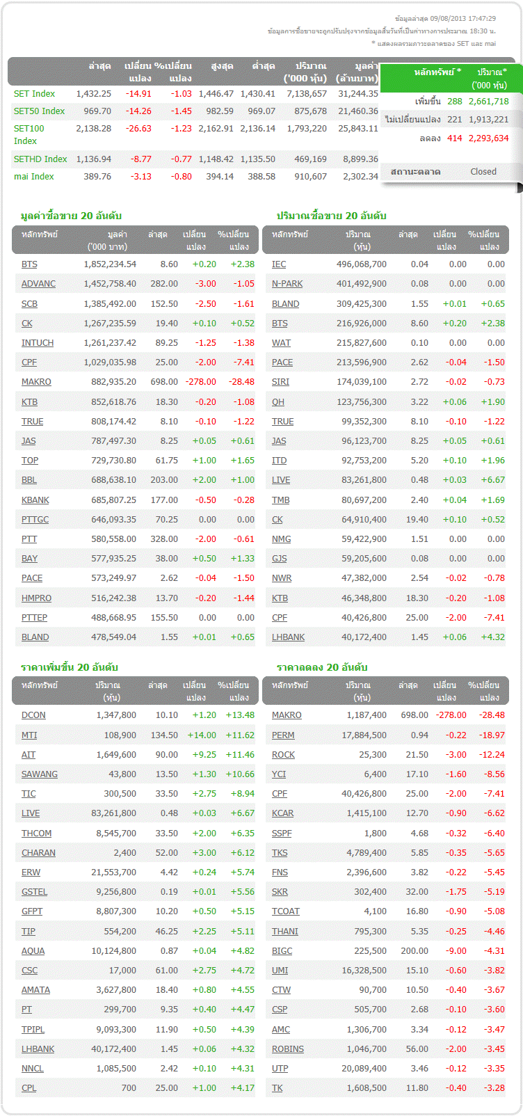 ### Graph Stock : Top 10 . Weekly 09.08.2013 ###