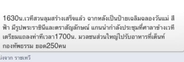 เวลา 12.00 น. เกิดเหตุชายนิรนามถีบผู้ปราศรัยบนเวทีกลุ่มกองทัพประะชาชนฯ สวนลุมพินี (ภาพและข่าว @phassaphol) จาก https://www.facebook.com/photo.php?fbid=10151743923657450&set=a.385635862449.164151.3