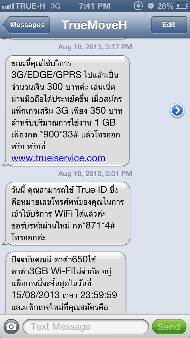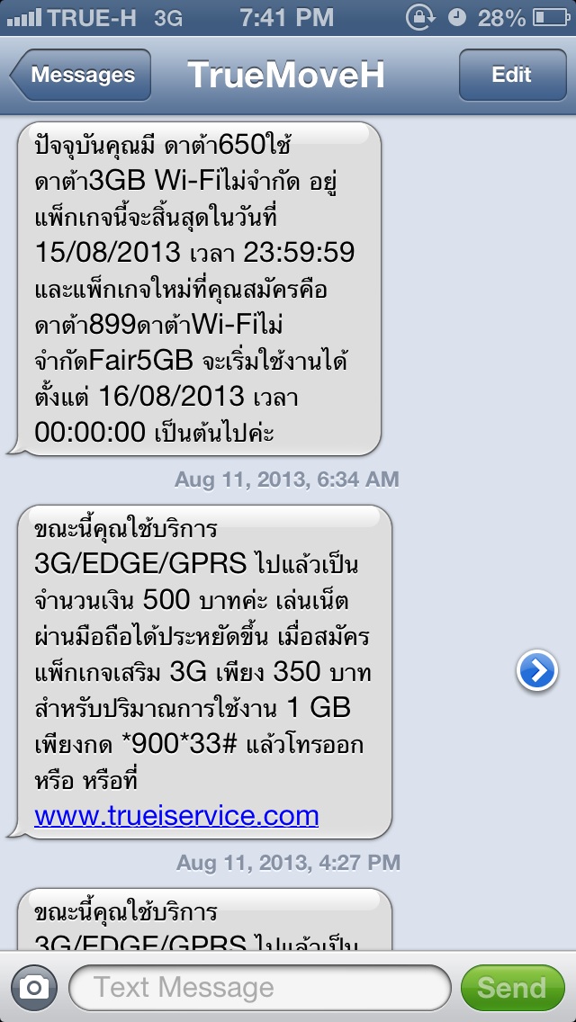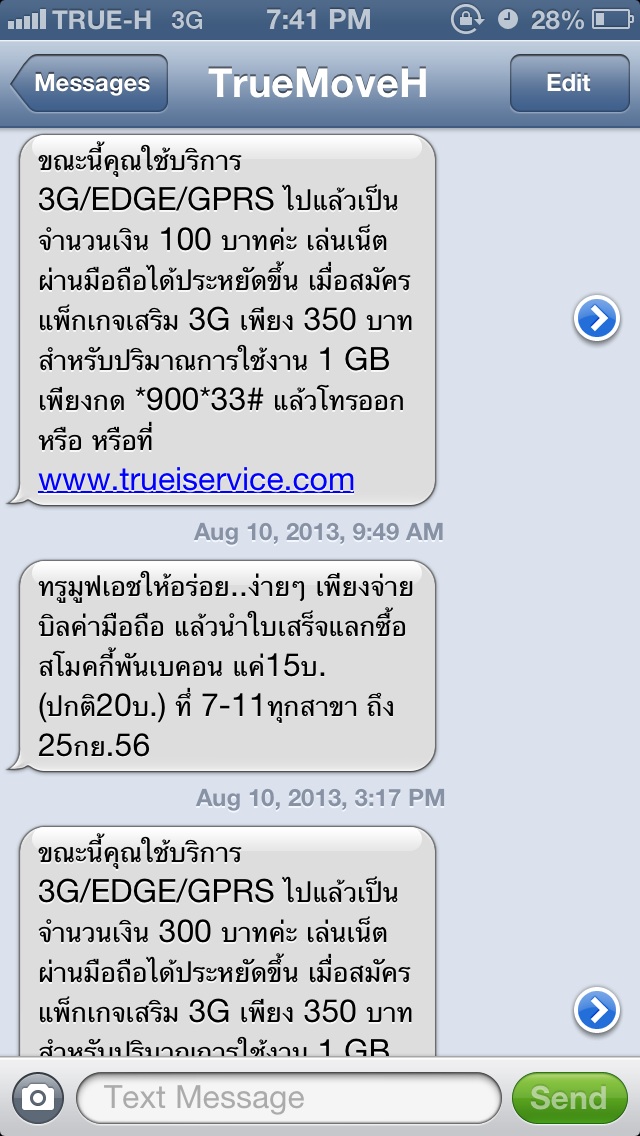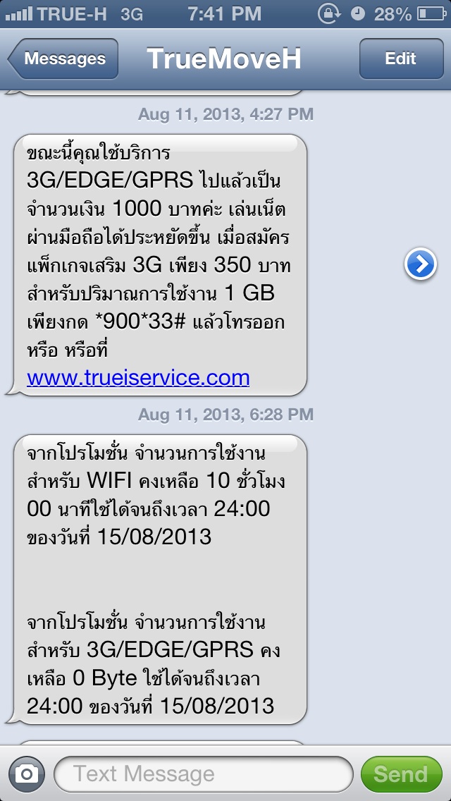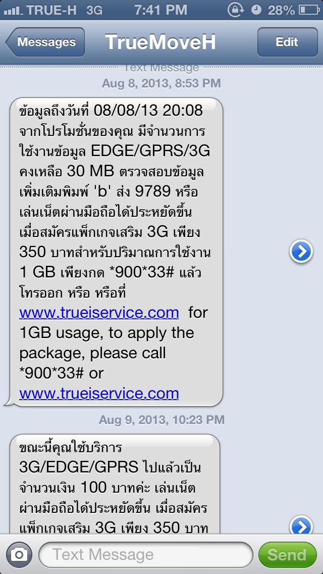 หลังจากนั้นไม่กี่ชั่วโมง ก็มีแมสเสจมาอีก ว่าผมใช้เนตเกินไป 100 บาทแล้ว ก็โอเคครับ ผมอาจจะเล่นเนตเยอะจริงๆ