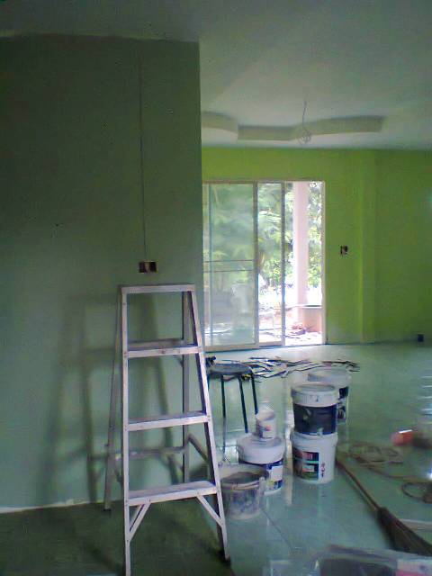 สาเหตุคือ สามีต้องทำงานไปด้วย ช่วงหนึ่ง ทำให้ช้า เงินจะจ้างใครก็ไม่มี ทำกันเองเหงาๆ เราช่วยเป็นลูกมือ และพี่ๆเพื่อนๆ ตอนทำฝ้าเพดานเอง ตอนนี้ กำลังจะปูกระเบื้องใกล้เสร็จ และทาสีภายใน