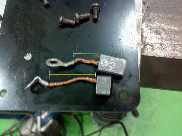 และเมื่อดึงแปรงถ่านออกมาก็เจอกับ แปรงถ่านที่มีขนาดความยาวสายทองแดงไม่เท่ากัน