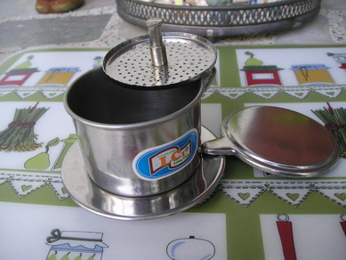 อย่างที้เล่าให้ทราบล่วงหน้าไปแล้วว่า ผมอยากจะไปหาซื้อของกระจุกกระจิกที่นั่น เช่นขดลวดต้มน้ำ++และกาแฟสดของลาว+แล้วจะหาแก้วชงกาแฟสดแบบเวียตนามเอามาสร้างบรรยากาศที่บ้านให้มันครึ้มใจเล่นๆ (ตามประสาคนไม่มีอะไรจะทำนั่นแหละ)........แก้วชงกาแฟแบบที่กล่าวนี้ผมเคยซื้อมาจากตลาดเมืองฮอยอันโหลหนึ่ง.....แล้วแจกใครต่อใครไปจนหมด.........ตัวเองเหลืออยู่แค่ถ้วยชง-แต่ไม่มีฝาปิด.......ไม่รู้ว่ามันหายไปไหนแล้ว.......ดูรูปถ้วยชงกาแฟของเวียตนามนะครับ.....