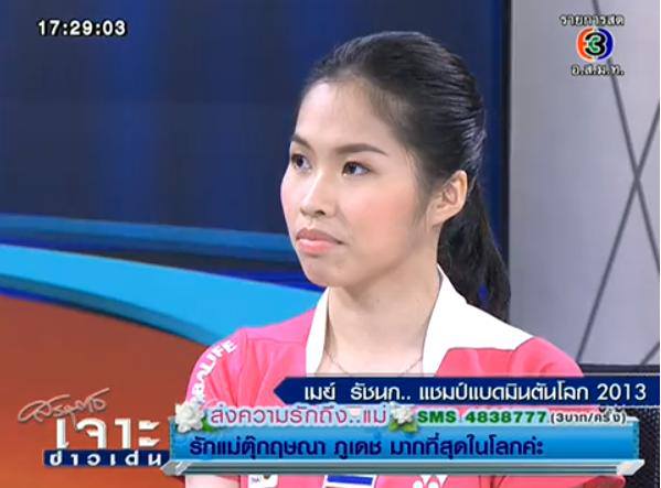 ร่วมแสดงความยินดี กับ "น้องเมย์" รัชนก อินทนนท์ สร้างประวัติศาสตร์คว้าแชมป์ แบดมินตันชิงแชมป์โลก "บีดับเบิลยูเอฟ เวิลด์ แชมเปี้ยนส์ชิพส์ 2013" ที่เมืองกว่างโจว ประเทศจีน ประเภทหญิง