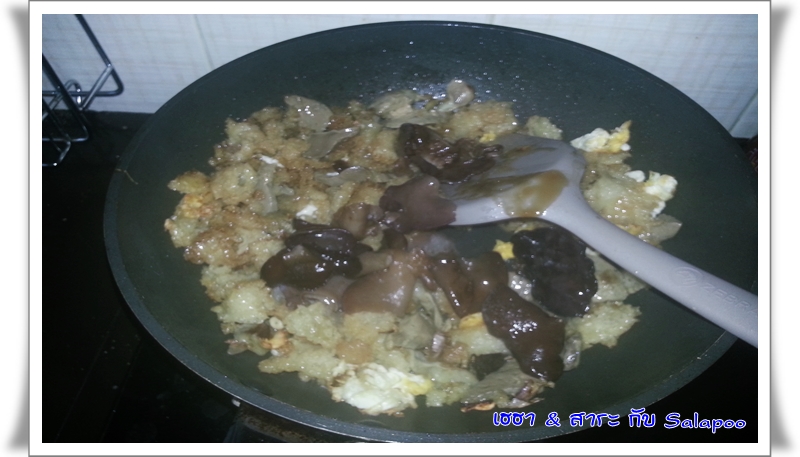 ผัดคลุกให้เข้ากัน มีเห็นหูหนูสด จัดไปอย่าให้เหลือ