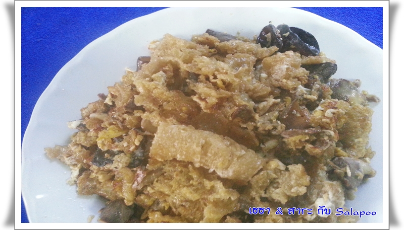 มื้อกลางวัน กระเพาะปลาผัดแห้งเครื่องในไก่