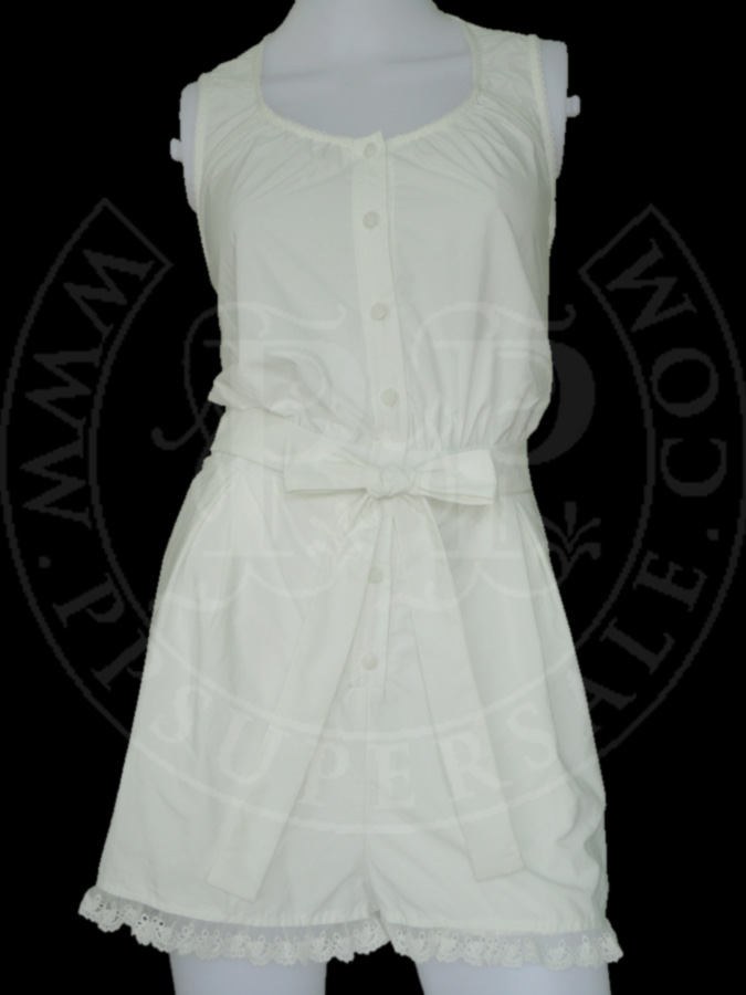JASPAL 05 m romper แขนกุดสีขาว ปลายขาระบายลูกไม้
