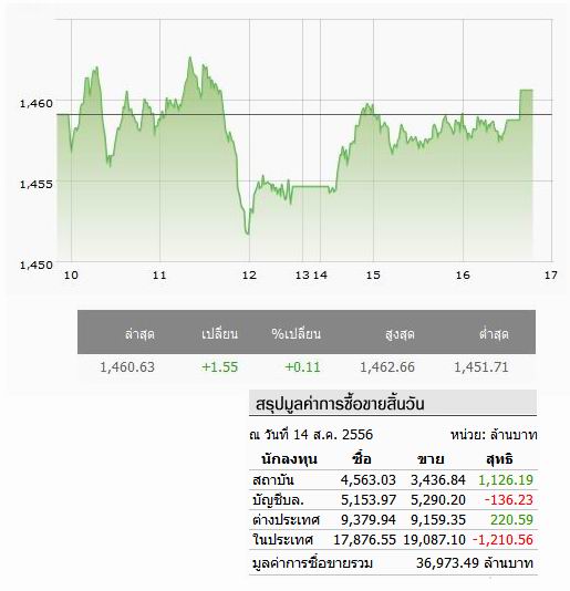 เข้ามาเคาะซื้อ ดันดัชนีขึ้นไปเขตเขียว ปิดที่เนิน 1,460.63 +1.55 จุด