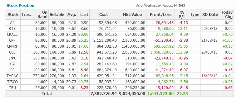 ในพอร์ต เมื่อวานนี้ มีทั้งขยับขึ้น กับ ขยับลง