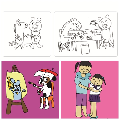 เรารวบรวมเป็นภาพผลงานของลูกไว้ เป็นลายเส้นบ้าง ใส่สีบ้าง