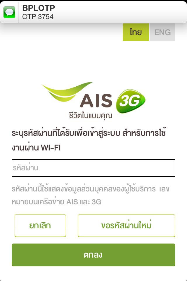 จากนั้นก็รอสักครู่ครับจะมี sms ส่งรหัสเข้ามา