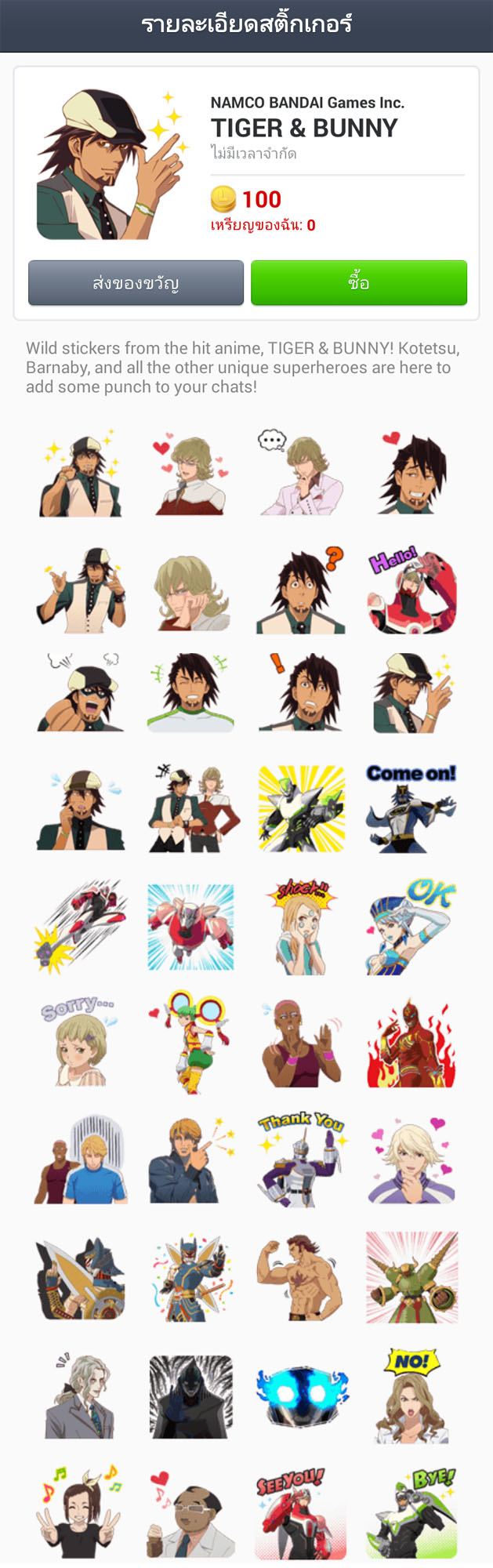 [แจ้งข่าว] ตอนนี้มีสติ๊กเกอร์ Tiger & Bunny ลง LINE แล้วใครซื้อมาแล้วบ้าง