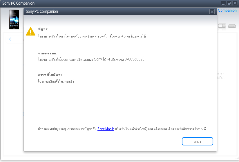 XPERIA ION จะอัพเกรดแอนดรอยด์ผ่านคอมแล้วมันขึ้นแบบนีครับ อัพไม่ได้