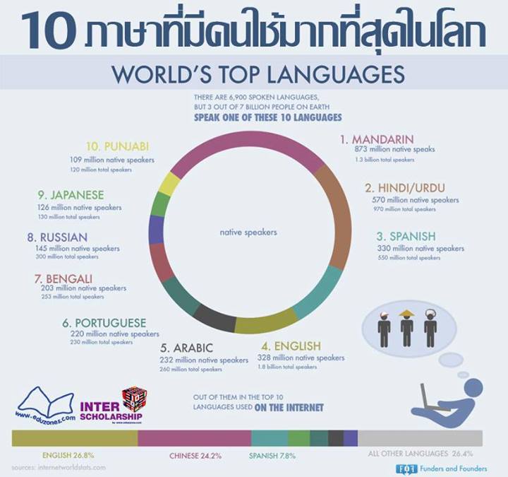 ตารางนี้มันจริงรึเปล่าครับเนี่ย 10 ภาษาที่มีคนใช้มากที่สุดในโลก